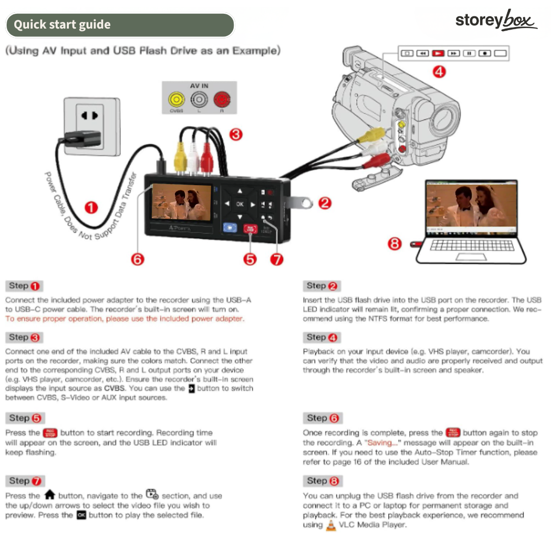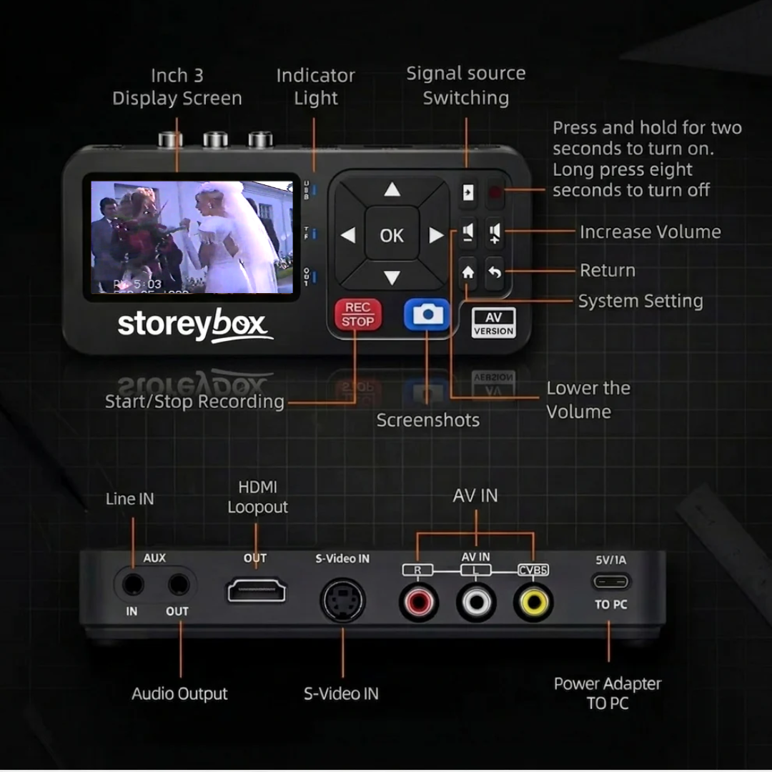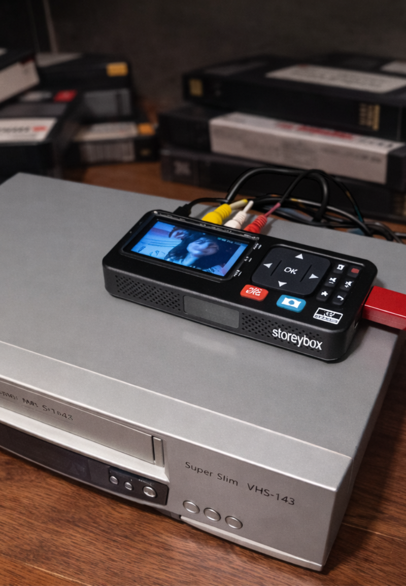 Storey Box is incredibly easy to use.and you can do it at home. Simply plug your VHS player into the device, connect your USB to the device and press the record button and it will automatically digitize your old tapes into high-quality digital files. You can then store, share, or watch them on any device.